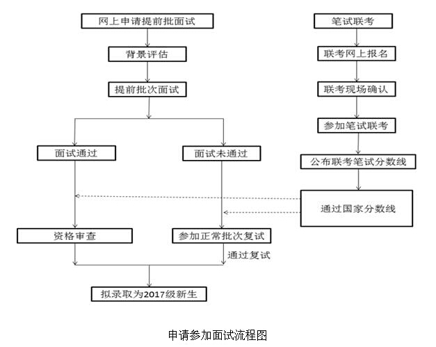 2017年MBA面試工作分為提前批次面試和正常批次復試,考生如通過提前批次面試,筆試成績達到2017年全國碩士研究生招生考試工商管理碩士考生進入復試的初試成績基本要求(A類線),即可取得待錄取資格,不需要再參加正常批次復試。