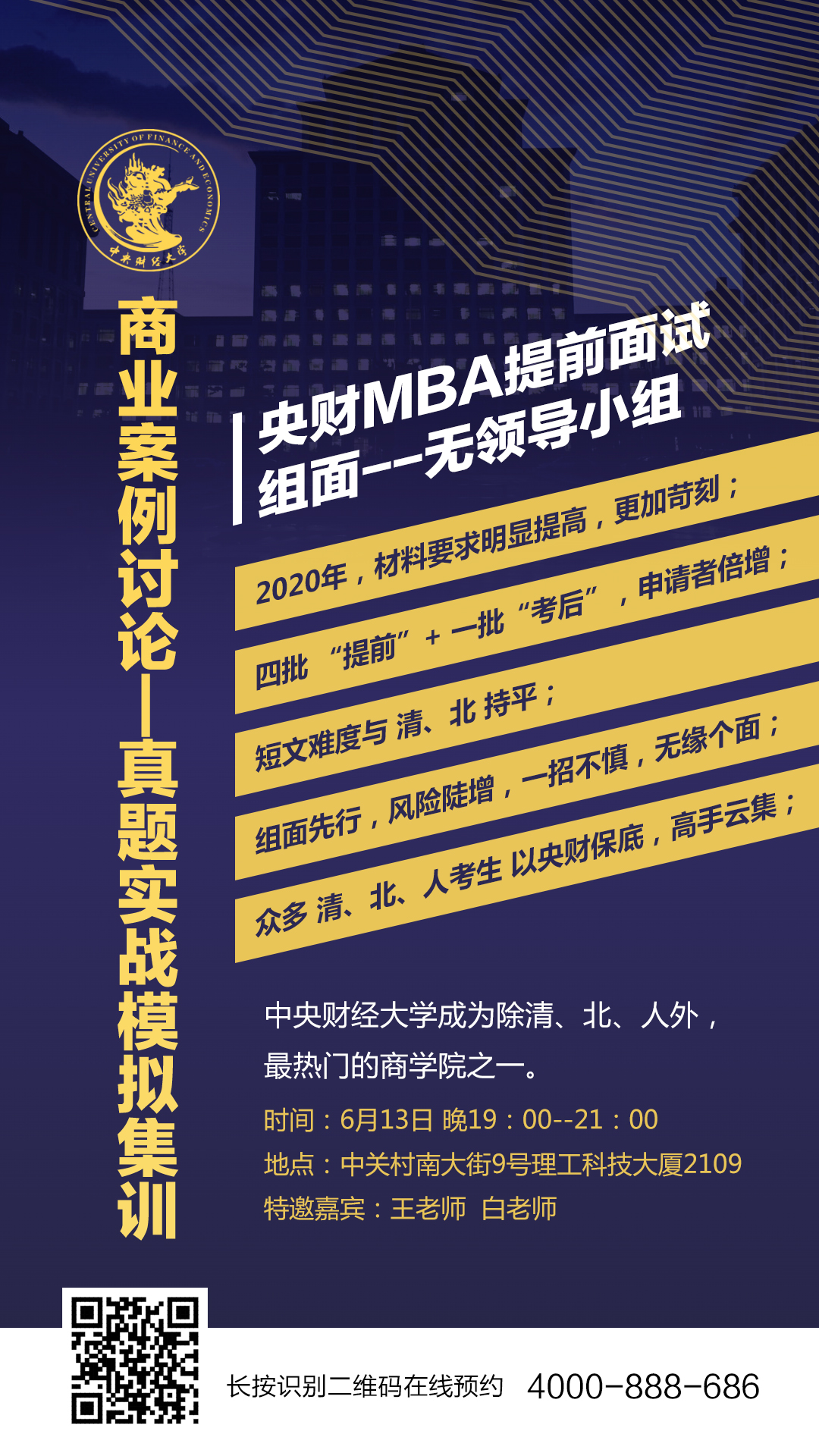 6月13日央財(cái)MBA提前面試組面——真題實(shí)戰(zhàn)模擬集訓(xùn)