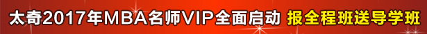 備考須知:備戰(zhàn)2017年MBA,面試未出,筆試先行!即日起,凡預(yù)報(bào)名太奇2017年MBA考前輔導(dǎo)班,除享受2016年學(xué)員最低折扣外,更有定制課程打包奉送,詳情點(diǎn)擊在線客服了解詳情>>>010-52893105