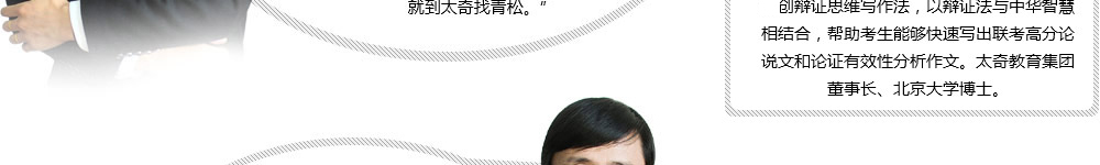 太奇寫作輔導(dǎo)采取獨(dú)創(chuàng)辯證思維教學(xué)法,以辯證法與中華智慧相結(jié)合,幫助考生能夠快速寫出聯(lián)考高分論說文和論證有效性分析作文。