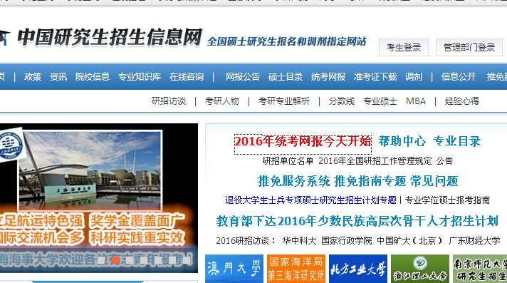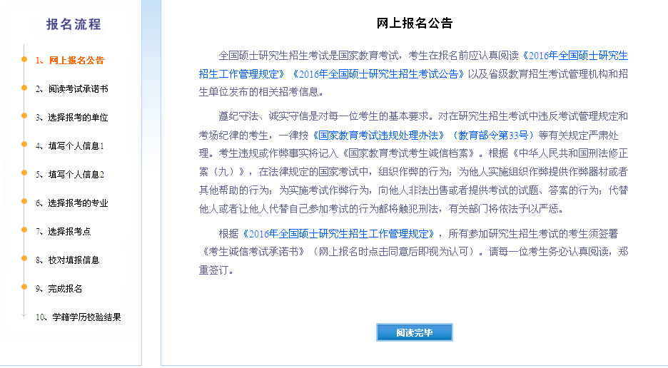 點擊上圖紅字的“2016年統(tǒng)考網報今天開始”可直接進入報名頁面