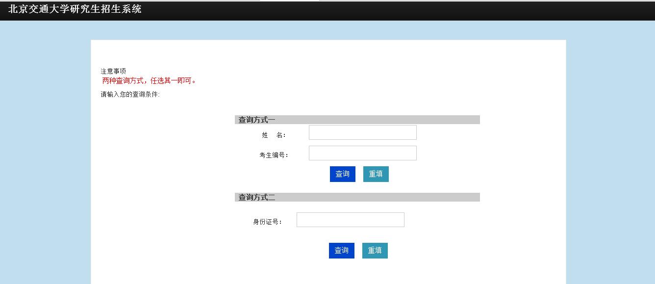 1.我校2016年碩士生入學(xué)考試初試成績于2月16日上網(wǎng)公布??忌鷳{姓名和考生編號(見準(zhǔn)考證)或者身份證號登錄北京交通大學(xué)研究生院,進入“北京交通大學(xué)研究生院招生專題”,在“碩士入學(xué)成績”中查詢本人初試成績。