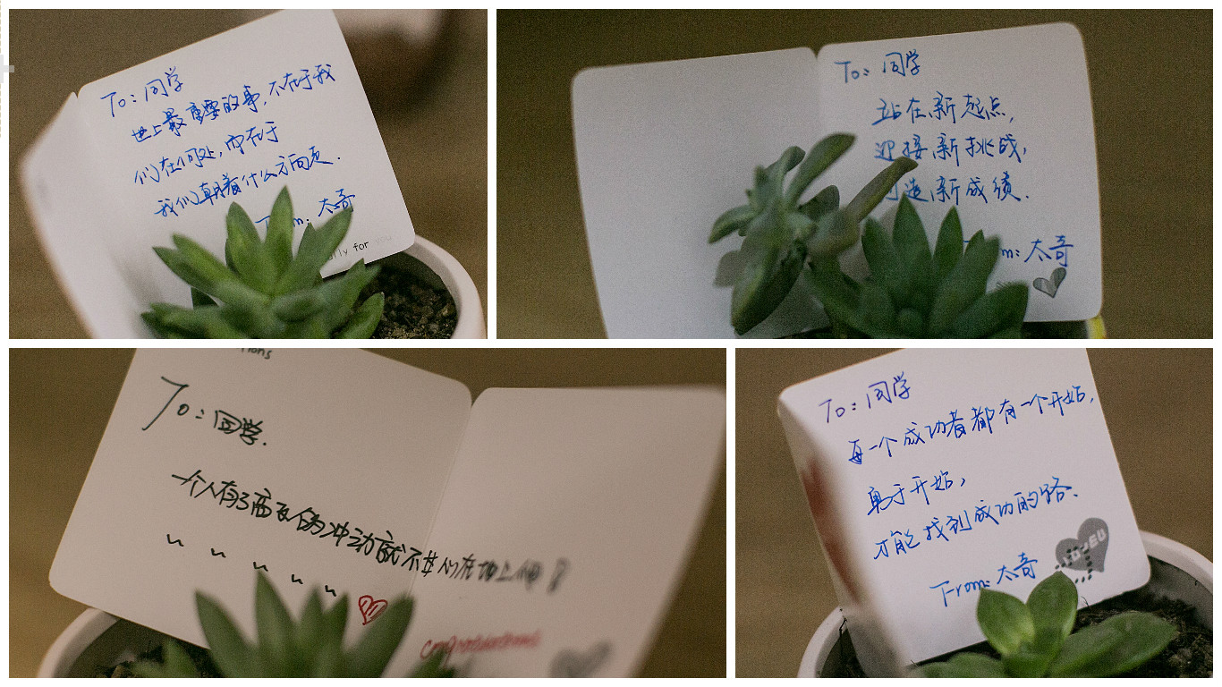 細(xì)心的同學(xué)們可能看到還沒(méi)有搬進(jìn)學(xué)員的空宿舍里桌子上都擺著一盆小多肉,這其實(shí)是我們隨“床”贈(zèng)送的小禮物,走近看更是有手寫卡片放在上面,滿滿的期望和愛(ài)意,太奇人小到細(xì)節(jié)的關(guān)心著學(xué)員的學(xué)習(xí)和生活。