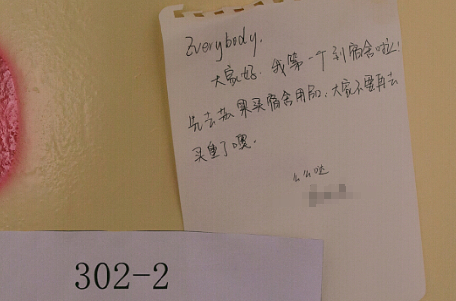 另外我們靈敏的攝影師小哥還在宿舍里看到了一張有愛(ài)的便條并用相機(jī)記錄了下來(lái),這么可愛(ài)的室友,可愛(ài)的宿舍,這個(gè)夏天想不開(kāi)心都難。