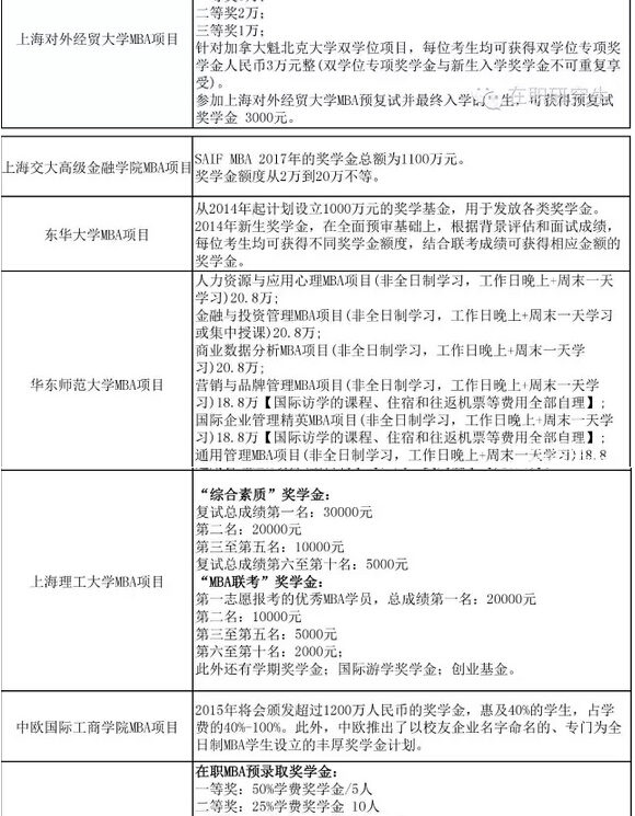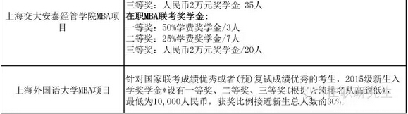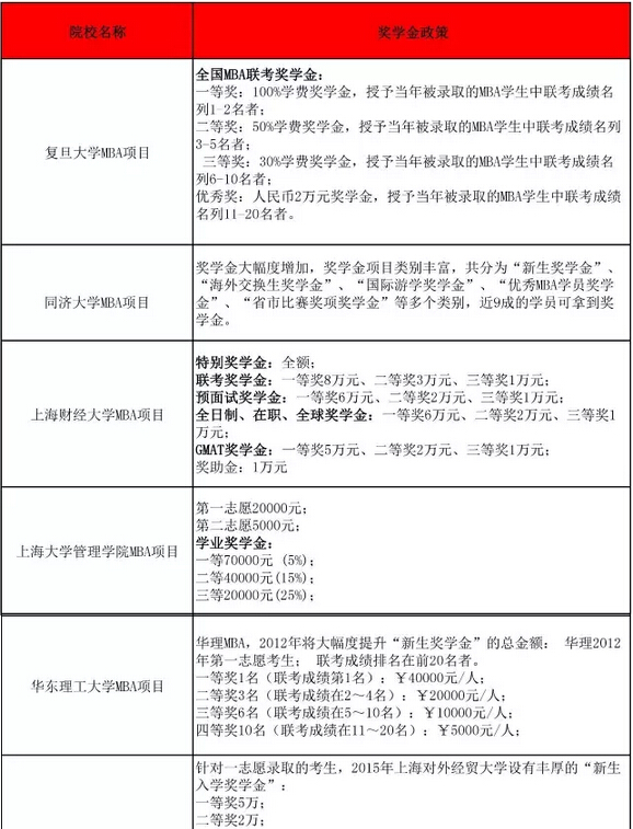 上海地區(qū)各大MBA院校獎學金政策匯總