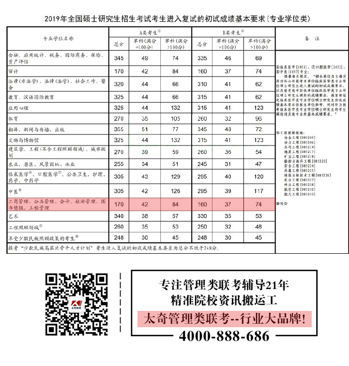 官宣!2019年管理類聯(lián)考考研國家線