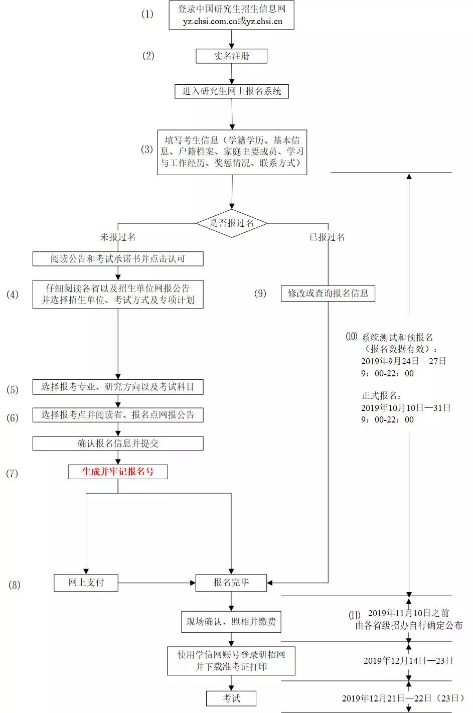 所以,如果你已經(jīng)確定了目標(biāo)院校,那你就可以直接參加預(yù)報名,提前占考點(diǎn);如果你現(xiàn)在還在等提前面試成績,那就可以等到正式報名(網(wǎng)上報名時間為2019年10月10日至10月31日,每天9:00-22:00)的時候再報名,不過也要抓緊了,不要拖到最后幾天,很容易遇到系統(tǒng)癱瘓的狀況。