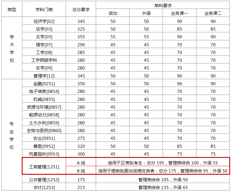 說明:上表為我校基本復(fù)試分?jǐn)?shù)要求,生源充裕學(xué)院可根據(jù)整體考試情況、招生計劃、學(xué)科專業(yè)特點等,上調(diào)分?jǐn)?shù)要求,但差額復(fù)試比例一般不得低于120%。報考該類學(xué)院的考生須達到學(xué)院公布的復(fù)試分?jǐn)?shù)要求才能參加復(fù)試。