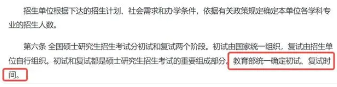 這則好消息就是教育部《2025全國(guó)碩士研究生招生工作管理規(guī)定》中的第六條,也是非常重要的一條:教育部統(tǒng)一確定初試、復(fù)試時(shí)間。