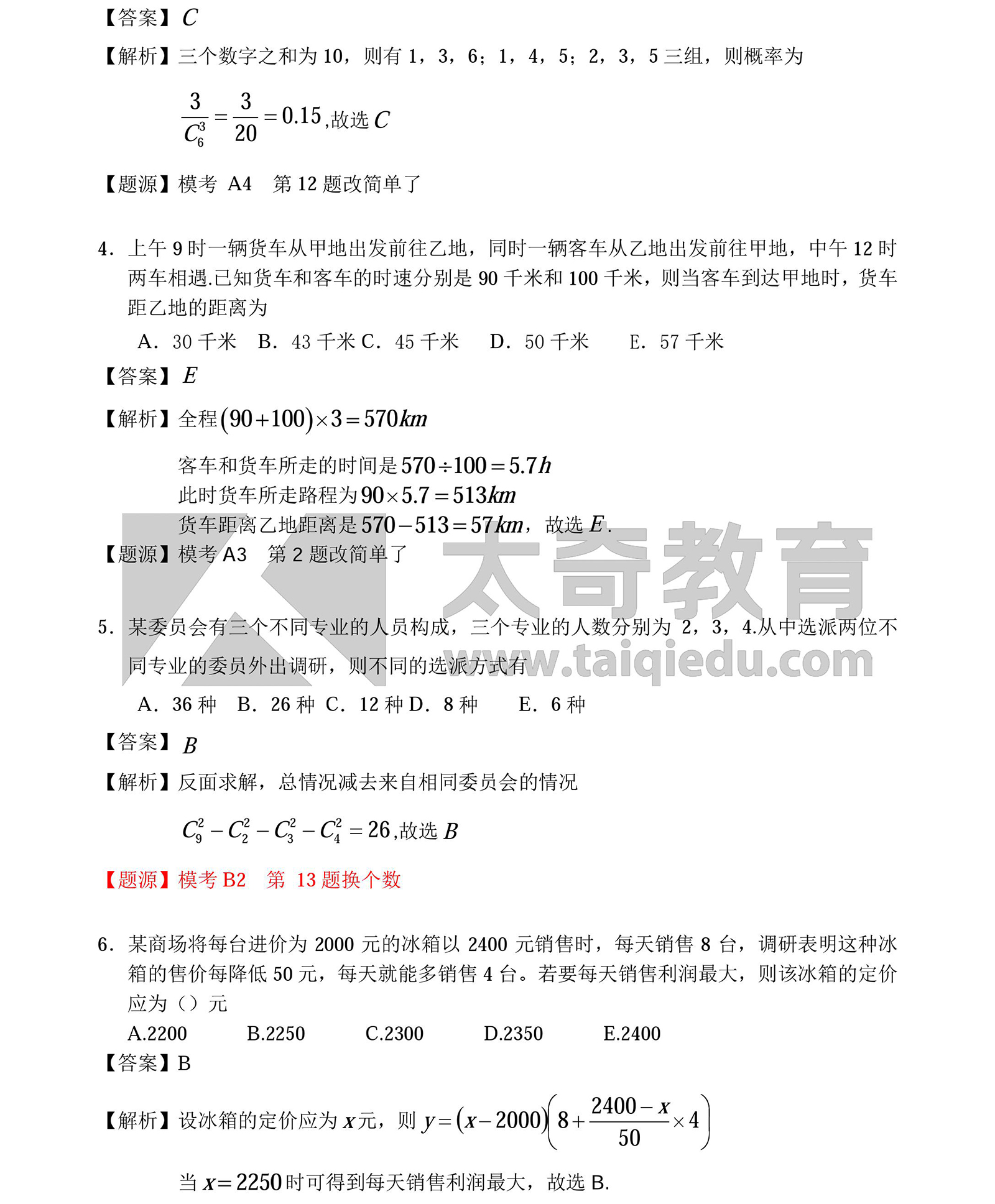 2016MBA管理類聯(lián)考數(shù)學(xué)真題答案:問題求解