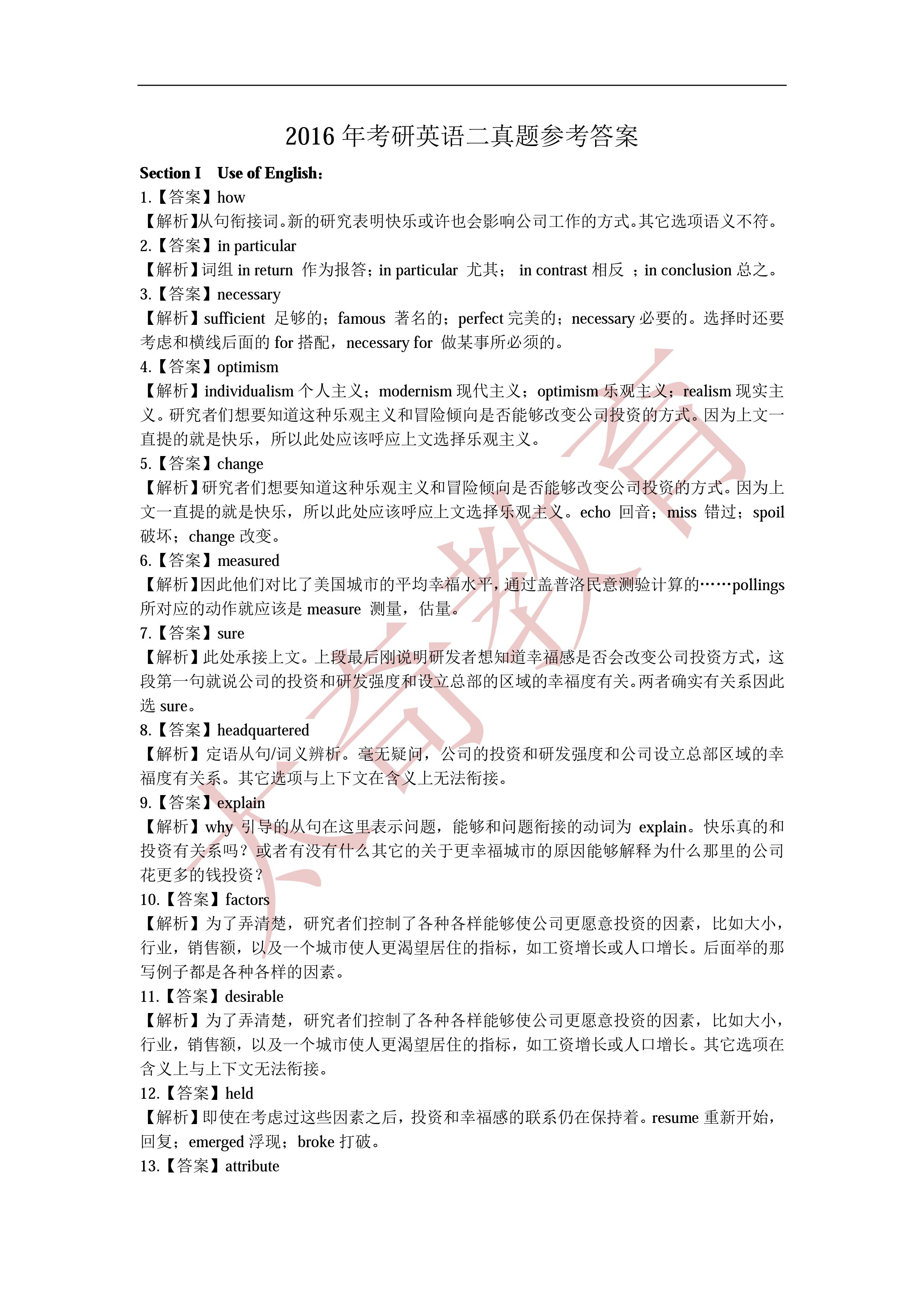 2016MBA管理類聯(lián)考英語(二)真題解析