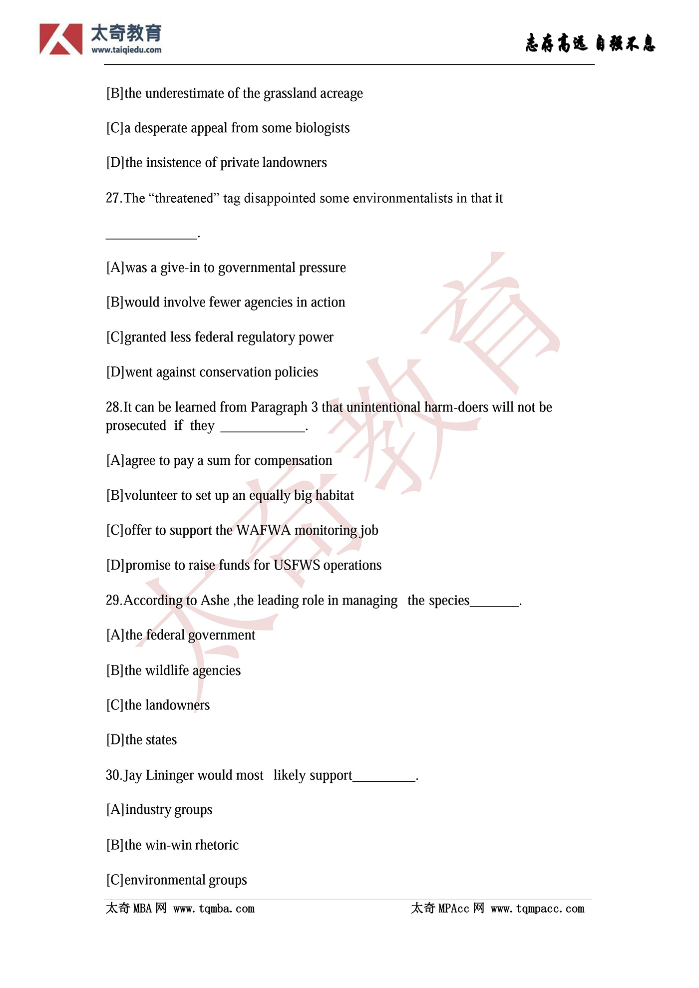 2016MBA管理類聯(lián)考英語(二)真題完整版(5)