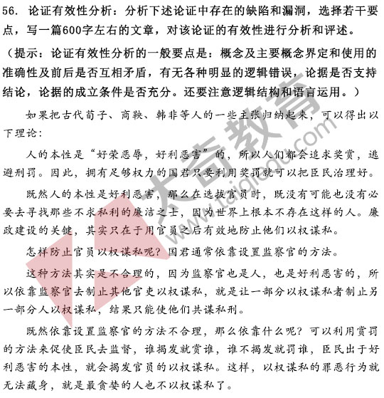 2017年MBA管理類聯(lián)考寫作真題:論證有效性分析