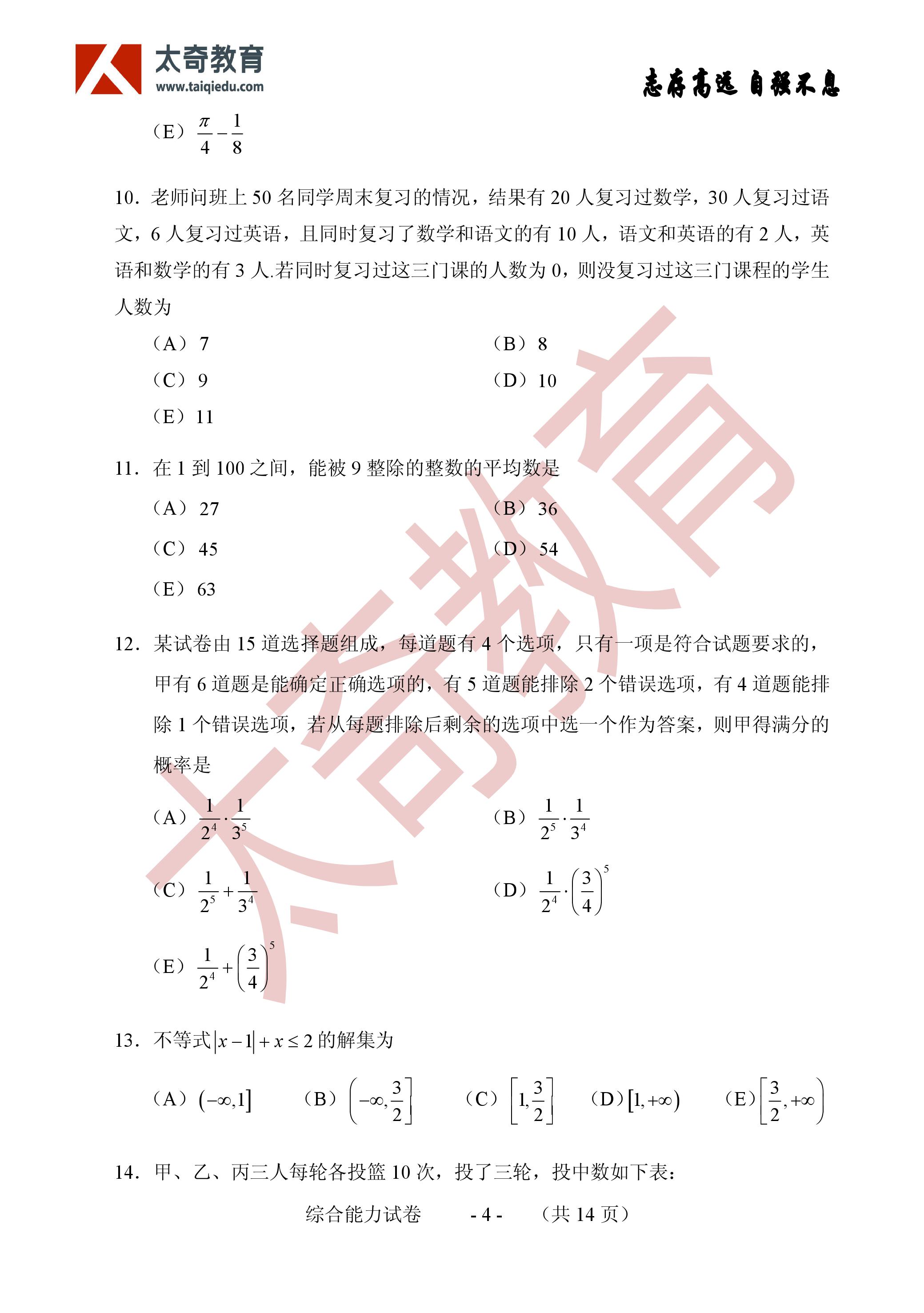 2017年MBA聯(lián)考數(shù)學(xué)真題參考答案:問題求解(3)