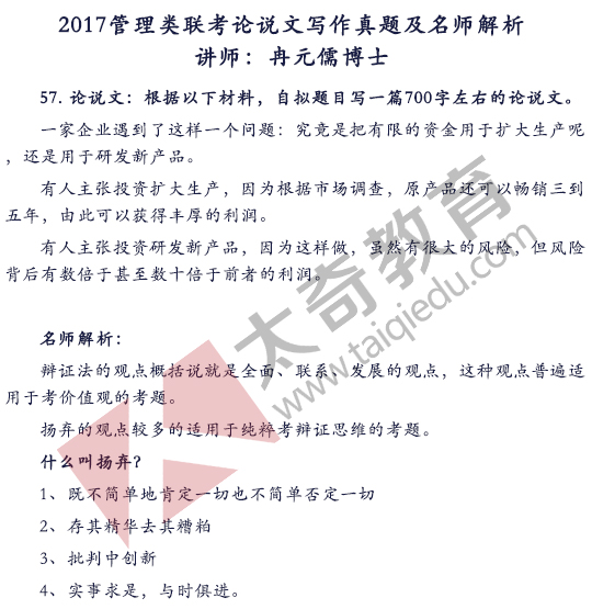 冉元儒博士解析2017年MBA聯考寫作真題(附參考范文