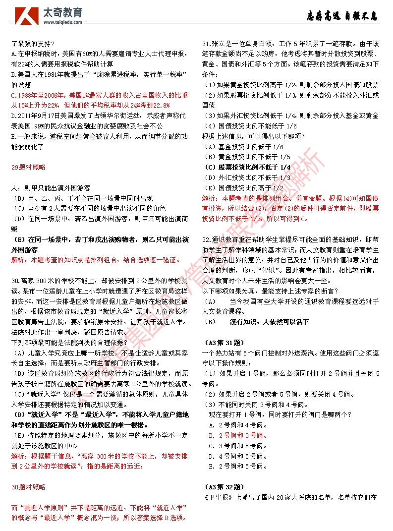 祝賀太奇教育2017管理類聯(lián)考邏輯直接命中46分(2)