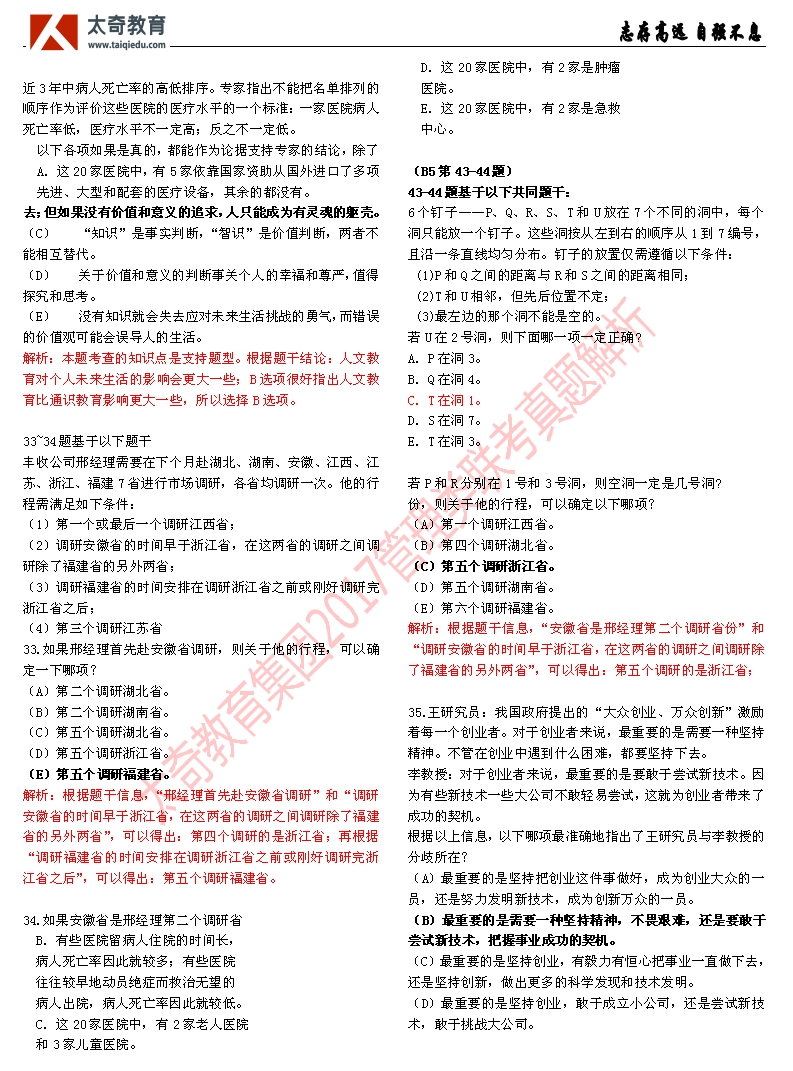 祝賀太奇教育2017管理類聯(lián)考邏輯直接命中46分(3)