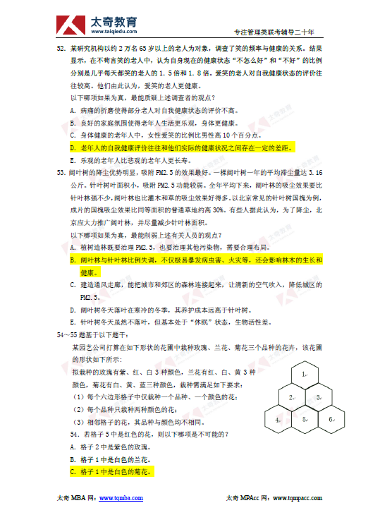2019年管理類聯(lián)考綜合能力邏輯真題及參考答案(10)