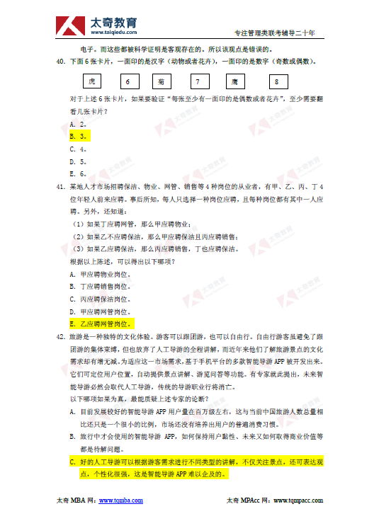 2019年管理類聯(lián)考綜合能力邏輯真題及參考答案(6)