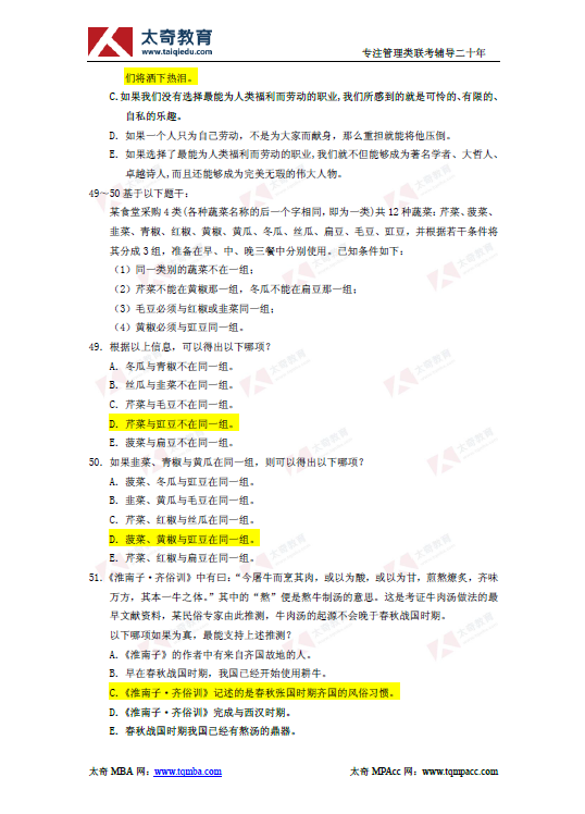 2019年管理類聯(lián)考綜合能力邏輯真題及參考答案(9)