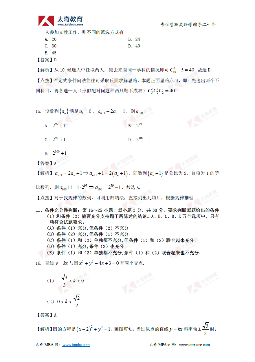 2019年管理類聯(lián)考數(shù)學真題+解析(太奇官方版)(6)