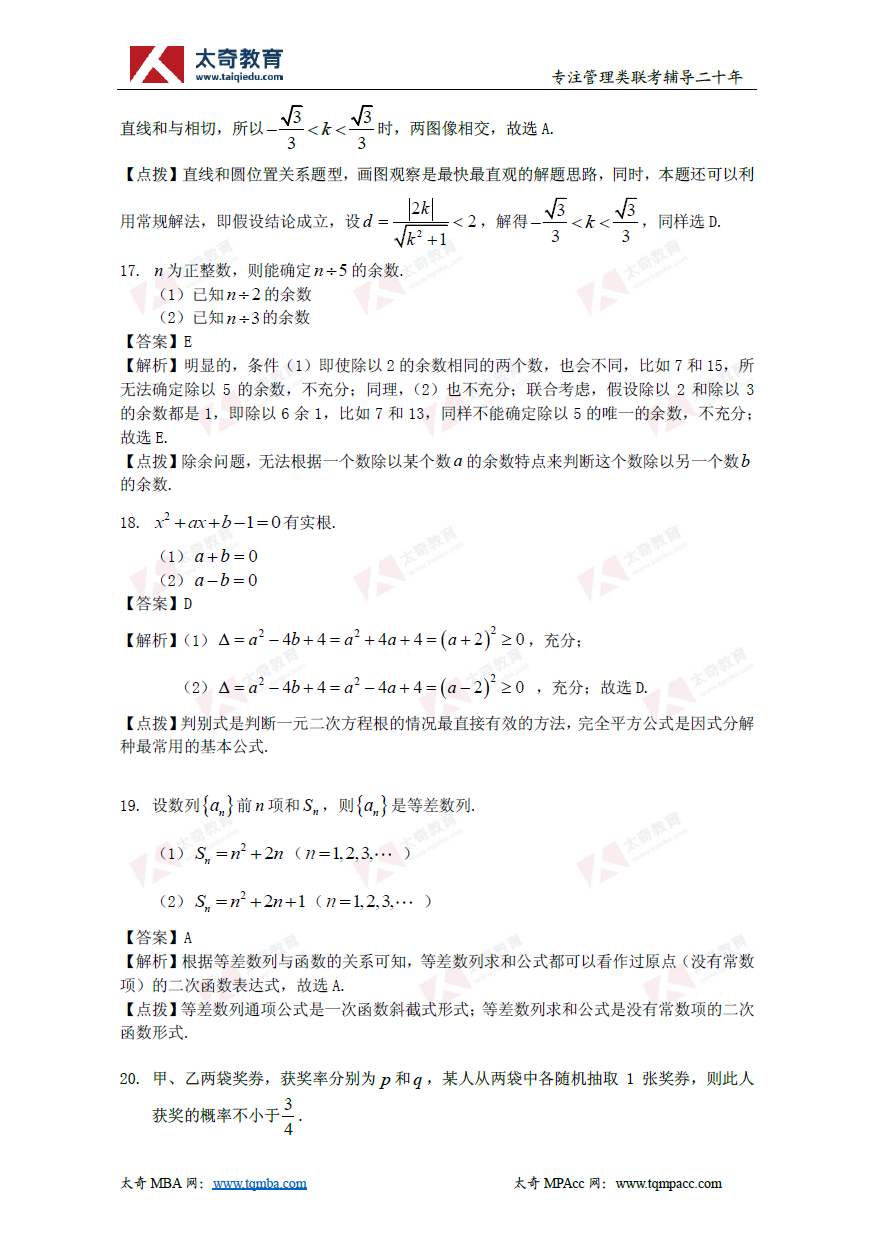 2019年管理類(lèi)聯(lián)考數(shù)學(xué)真題+解析(太奇官方版)(7)