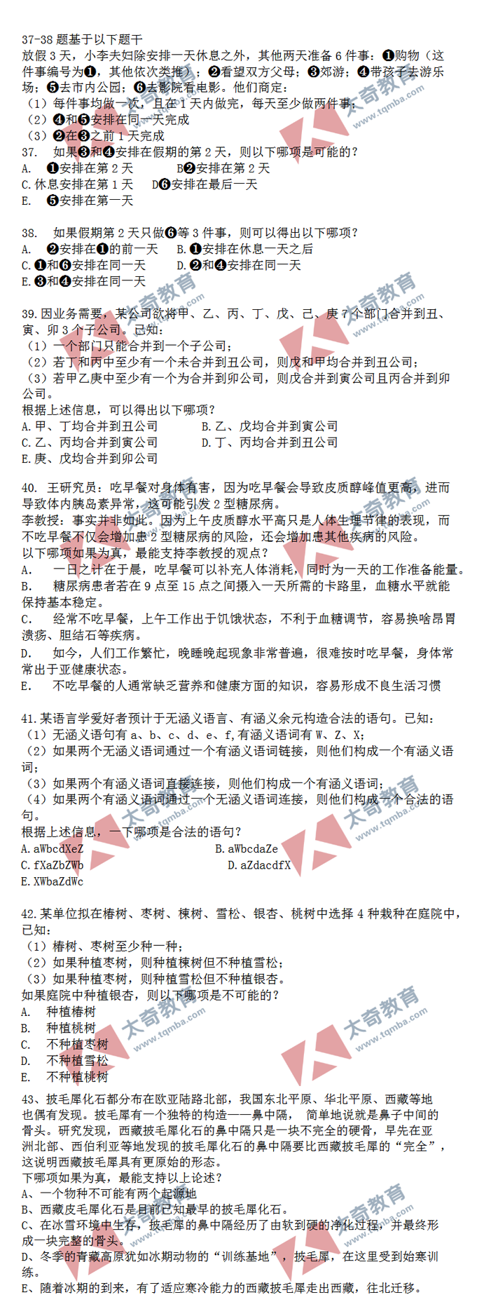 2020年MBA/MEM管理類聯(lián)考邏輯真題(3)