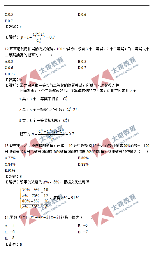 2021年MBA管理類聯(lián)考數(shù)學真題答案及解析(4)