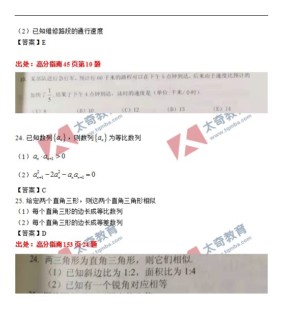 太奇2021年MBA管理類聯(lián)考數(shù)學(xué)真題命中對(duì)照(9)