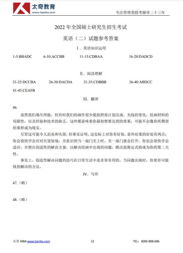 2022年英語(yǔ)(二)真題及答案