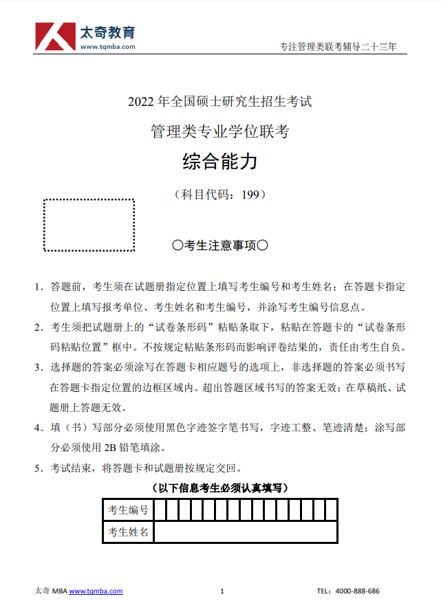 今天太奇小編為大家整理了2022年綜合管理考試真題,考試答案在文章最后,祝大家今年考試順利,考上自己心儀的院校。