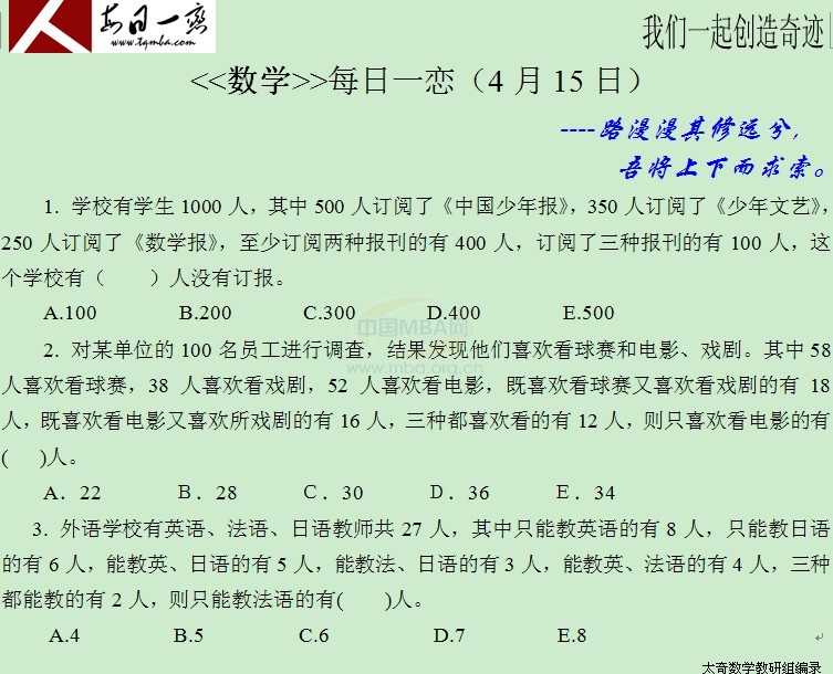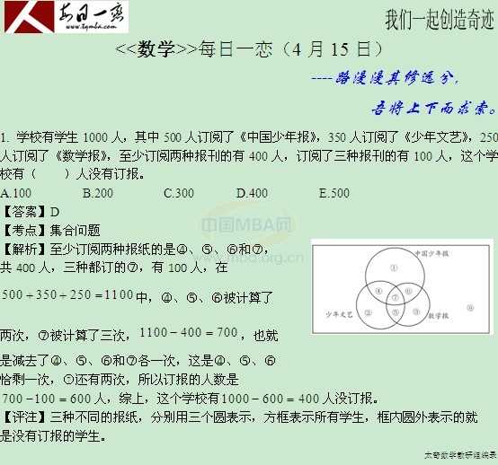 【太奇MBA 2014年4月15日】 MBA數(shù)學(xué)每日一練