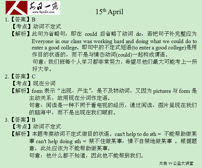 【太奇MBA 2014年4月15日】 MBA英語每日一練
