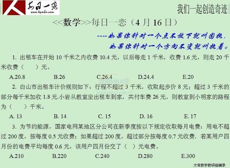 【太奇MBA 2014年4月16日】 MBA數(shù)學(xué)每日一練