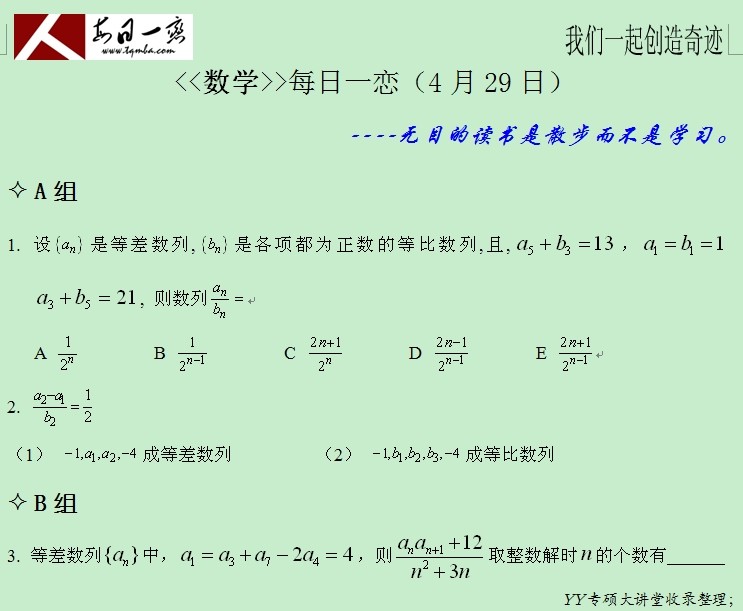 【太奇MBA 2014年4月29日】 MBA數學每日一練