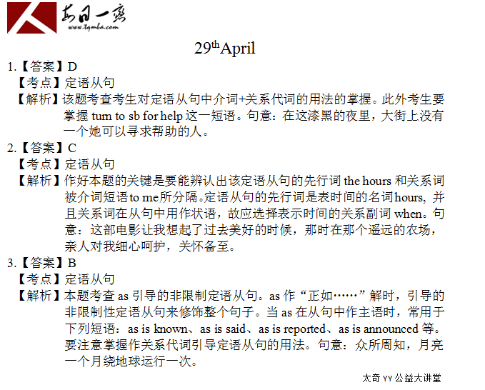 【太奇MBA 2014年4月29日】 MBA英語每日一練