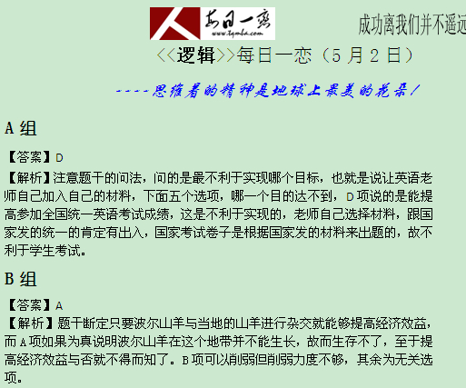 【太奇MBA 2014年5月2日】 MBA邏輯每日一練