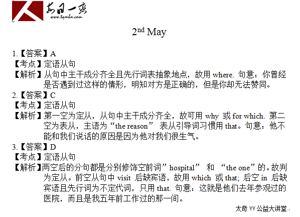 【太奇MBA 2014年5月2日】 MBA英語(yǔ)每日一練