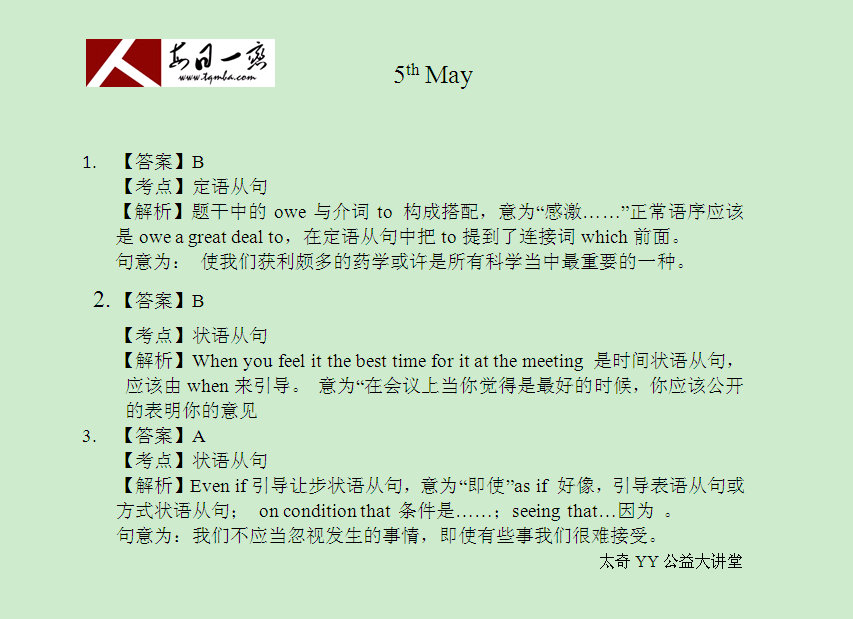 【太奇MBA 2014年5月5日】 MBA英語每日一練