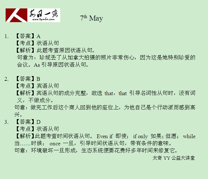 【太奇MBA 2014年5月7日】 MBA英語每日一練