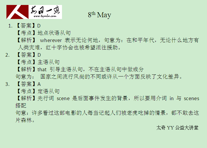 【太奇MBA 2014年5月8日】 MBA英語每日一練
