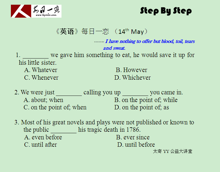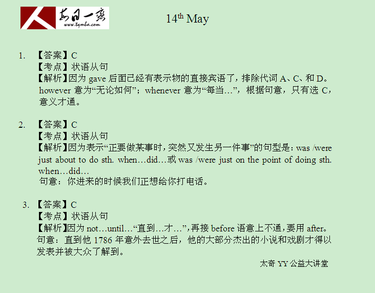 【太奇MBA 2014年5月14日】 MBA英語(yǔ)每日一練