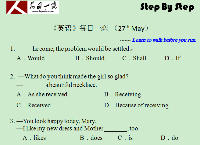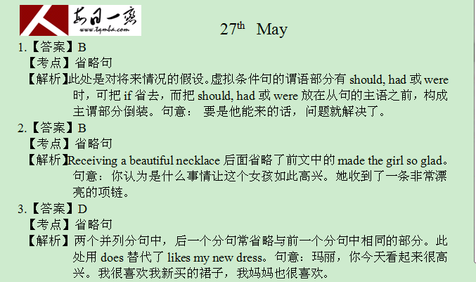 從本周一(5月26日)開始,每日一“戀”各科不再發(fā)放詳解,相關(guān)題目解析每周在太奇YY大講堂由老師進(jìn)行統(tǒng)一講解,每周課程在太奇YY大講堂萬人備考群進(jìn)行公布,YY群號:9444754 YY聽課頻道:57378066