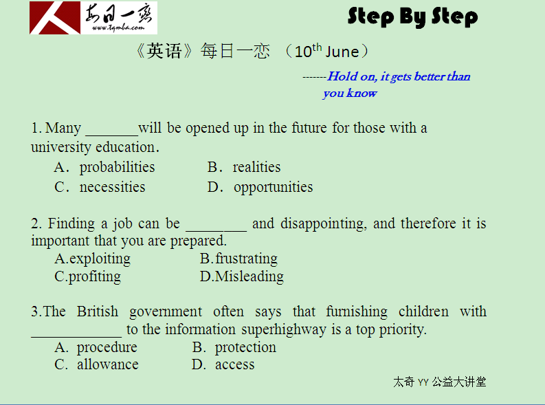 【太奇MBA 2014年6月10日】 MBA英語每日一練
