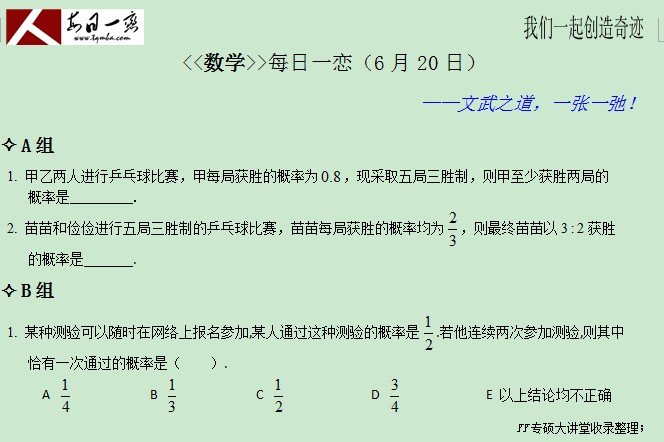 【太奇MBA 2014年6月20日】 MBA數(shù)學(xué)每日一練