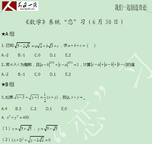 【太奇MBA 2014年6月30日】 MBA數(shù)學(xué)每日一練