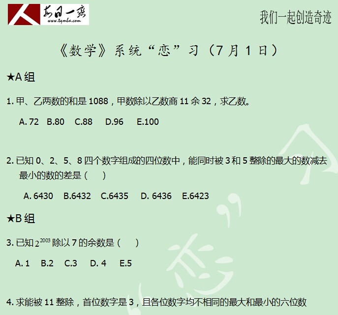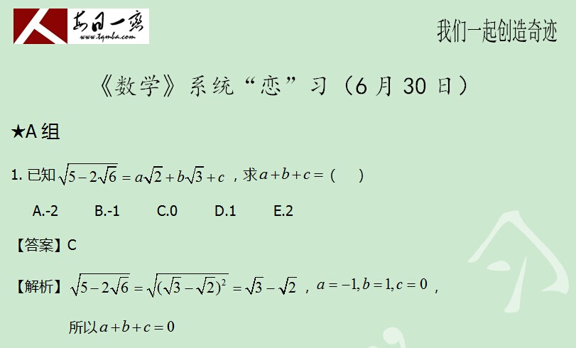 【太奇MBA 2014年7月1日】 MBA數(shù)學(xué)每日一練