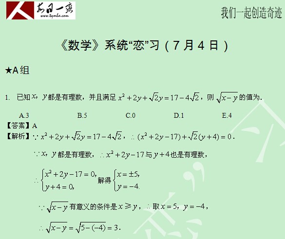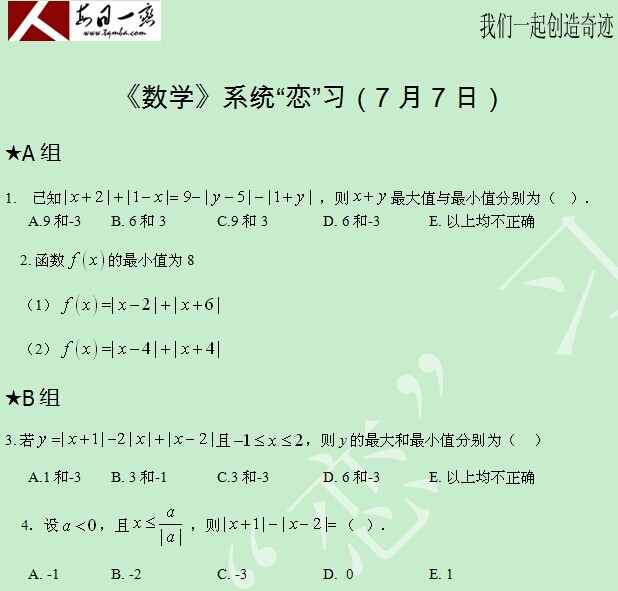 【太奇MBA 2014年7月7日】 MBA數(shù)學每日一練
