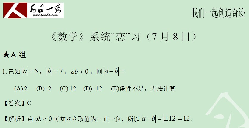 【太奇MBA 2014年7月9日】 MBA數(shù)學(xué)每日一練