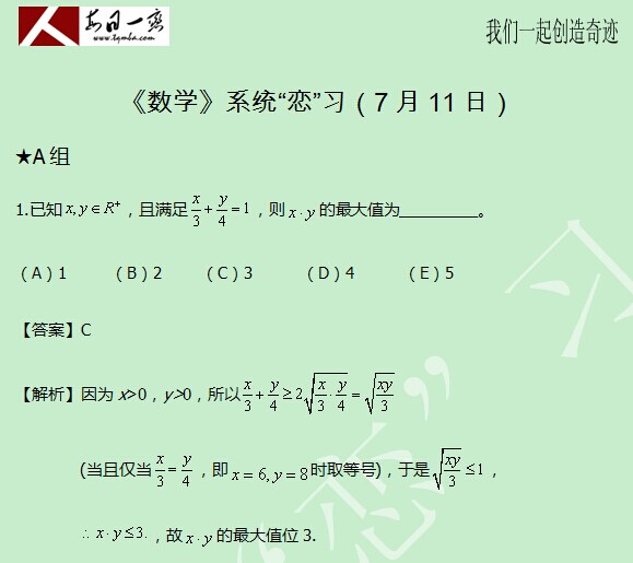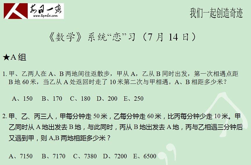 【太奇MBA 2014年7月14日】MBA數(shù)學(xué)每日一練